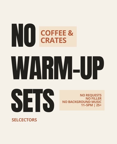 Coffee & Crates is a vinyl-forward daytime session built for people who care what’s being played.